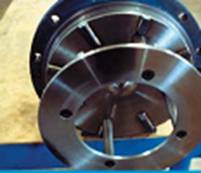 管沿泵使用一系列平行盤片,當(dāng)盤片旋轉(zhuǎn)時(shí)產(chǎn)生邊界層和粘性拖動(dòng)力平滑推動(dòng)流體運(yùn)動(dòng),對(duì)流體沒有破壞性的沖擊。旋盤泵的裝配對(duì)安裝公差沒有特別要求,泵體內(nèi)也不存在有相互沖擊的部件,這就意味著不會(huì)產(chǎn)生金屬與金屬間的摩擦和磨損。